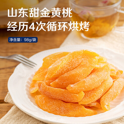 山东甜黄金桃为原料,鲜果制作,保留黄桃原生水分,口感甘甜。无香精与色素添加,采用轻加工技术,质地鲜润软糯。