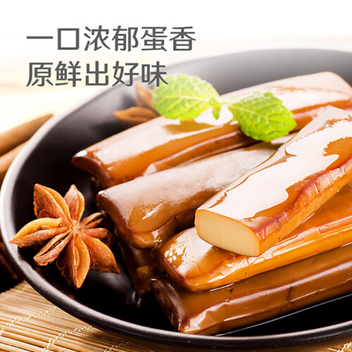 滑嫩醇香的鸡蛋干,采用优质的新鲜鸡蛋,在加工的过程中没有添加一滴水以及别的成分,美味又健康,非常适合上班族食用。