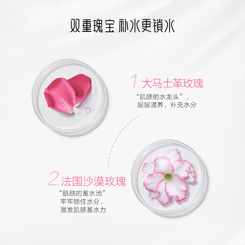 玫瑰精粹可深层滋养肌肤,为肌肤提供源源不断的水动力,同时又可平衡油脂,起到抑痘祛痘效果,让肌肤平滑嫩白。