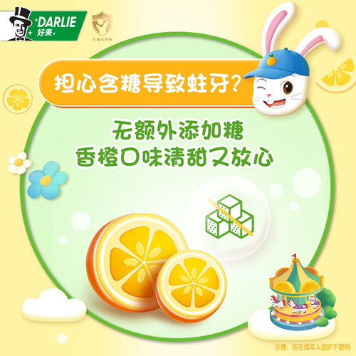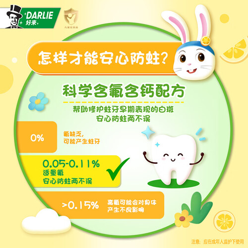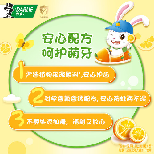 含有水果口味,可以提高刷牙的主动性,成分采取食用级原料,含氟含钙,可以帮助修护龋齿。