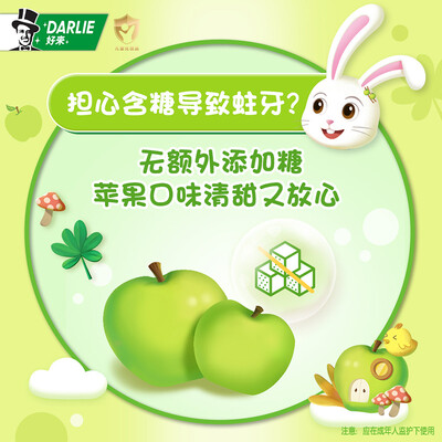 温和配方,清洁牙齿的同时能够呵护宝宝的牙齿和娇嫩的牙龈。苹果味的牙膏,含在嘴里清爽不刺激。