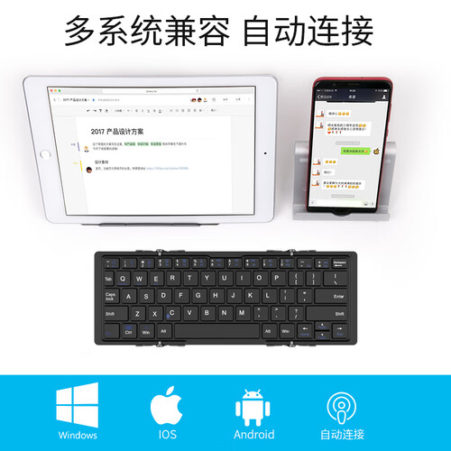 这款键盘的设计很独特,它是一款可以折叠的键盘,仅有64键,很适合出差党使用。超薄设计的它更支持与多设备相连接。