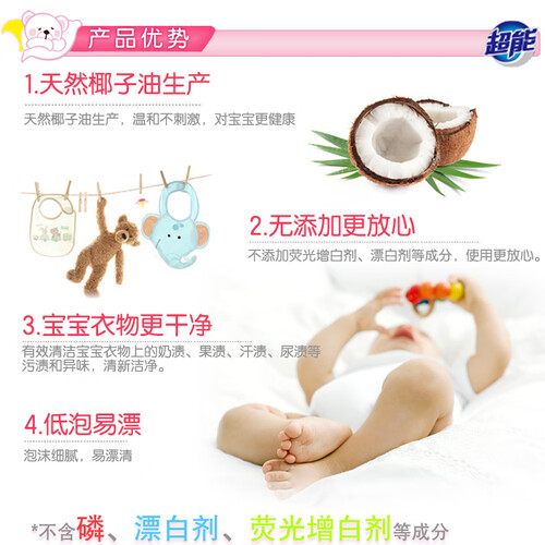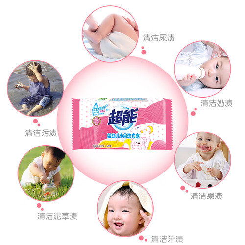 超能洗衣皂专为婴幼儿研制,能够有效清洁宝宝衣物上的奶渍等日常污渍,保持衣物柔软舒适,全面呵护宝宝健康。