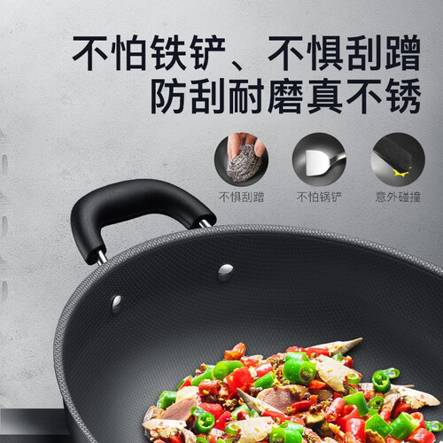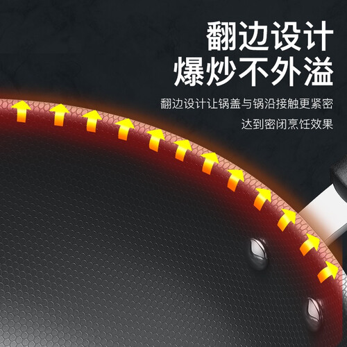 锅口细节做了翻边处理,贴心设计,可以锁住食物营养,密闭烹饪,香浓更入味。采用无涂层设计,用来炒菜,健康更放心。
