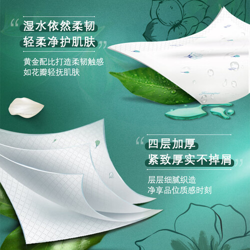 清香茉莉花味道,唤醒怡人心境。四层加厚设计,擦拭不易松散。选用进口原生木浆为原料,让每一张纸都充满自然气息。