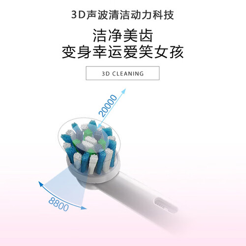 3D声波清洁科技,高频振动有效击碎牙结石,牙齿干净清新。搭配小圆刷头,多方位包裹牙齿,深层清洁牙齿缝隙。