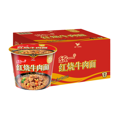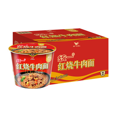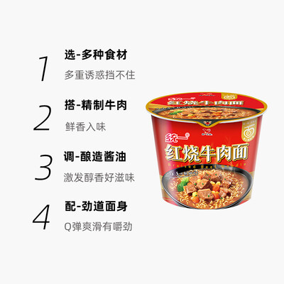 统一红烧牛肉方便面,面弹Q滑,香气扑鼻,煮后可任意搭配黄瓜和胡萝卜等菜肴,味道更加丰富美味。加班饥饿来一桶,幸福满满。