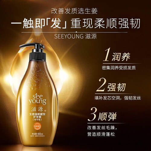 特别添加生姜提取物,但没有浓烈的生姜味,味道天然清淡,带来更愉悦的洗护感受。并且在清理头皮污垢的同时,还能强韧发根。