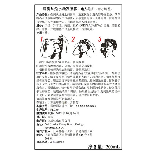 碧缇丝 免水洗喷雾清香洗发水