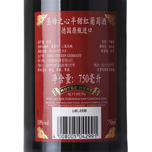 圣母之心半甜红葡萄酒
