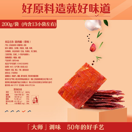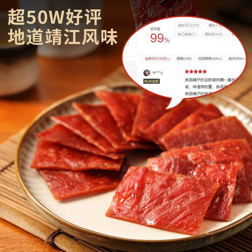 这款肉干均匀紧实,如玛瑙般红艳透亮,鲜香甜咸,有嚼劲不油腻。