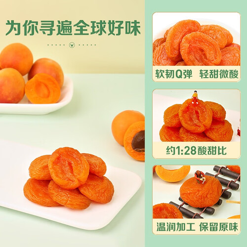 柔韧的红杏干,经过科学调配,酸甜比例适中,能够吃出鲜果滋味。而且不添加人工色素,释放自然果色,吃得更放心。