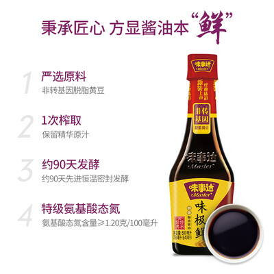 这款酱油呈现出醇厚的色泽,香味鲜美浓郁,是增味提鲜好帮手。甄选非转基因脱脂黄豆,减少肠胃负担,食用更健康。