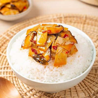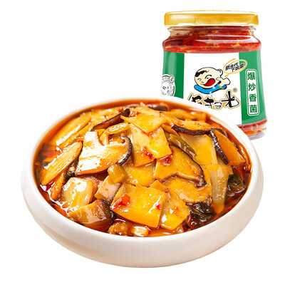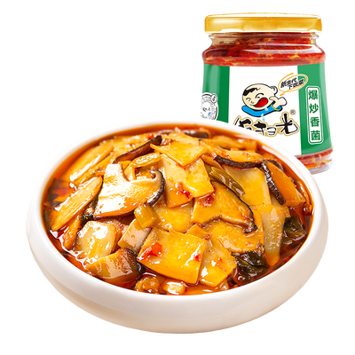 采取新鲜饱满的野香菌为原料,加以多种调味料腌制后,鲜香麻辣,适合配饭、配各种饼。香菌大片量多,香辣不呛,入口过瘾。