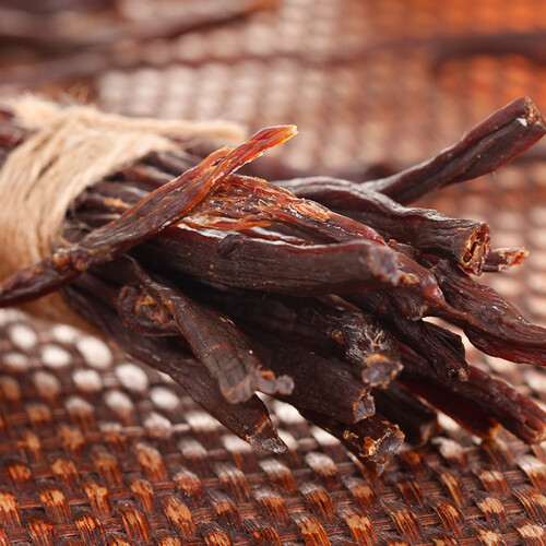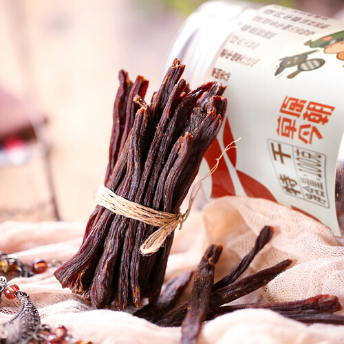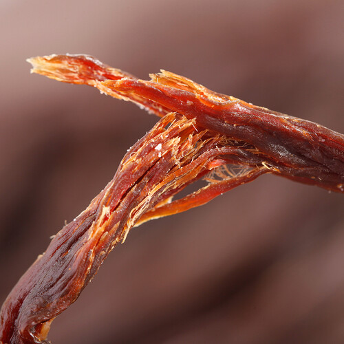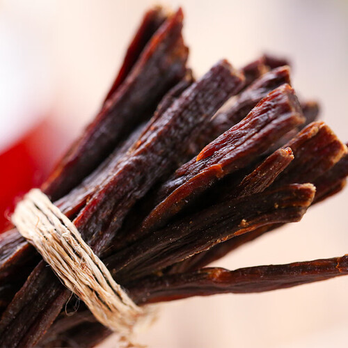 将原材料细心反复筛选,加入适量的食用盐,使口更加咸香细嫩。肉干色泽自然,根根分明、味道鲜美、富有嚼劲,让人一口爱上。