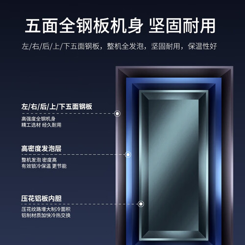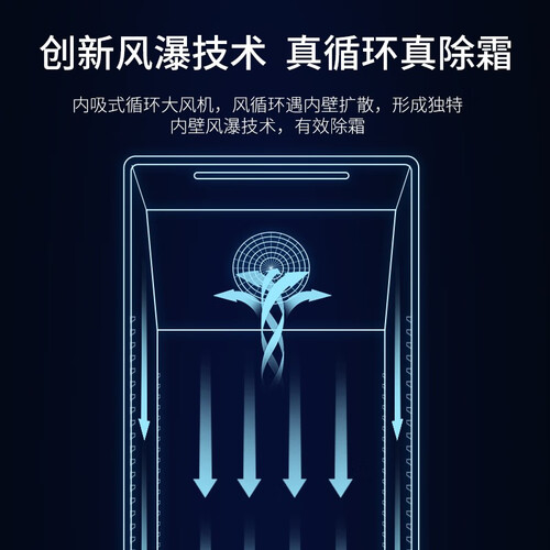 内吸式循环大风机,风循环遇内壁扩散,形成独特内壁风瀑技术,能够快速除霜。搭载全钢板机身,坚固耐用。