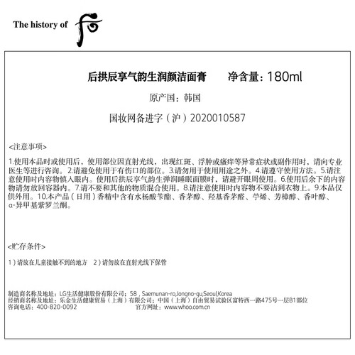 Whoo气韵生润颜洁面膏
