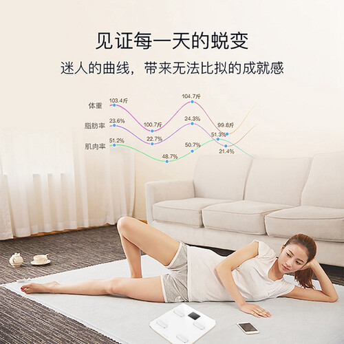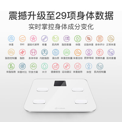 29项身体数据,很好地测量出脂肪肌肉等29项身体的数据,多方位升级。秤面更大更稳固,舒适的承重体验,放心使用。