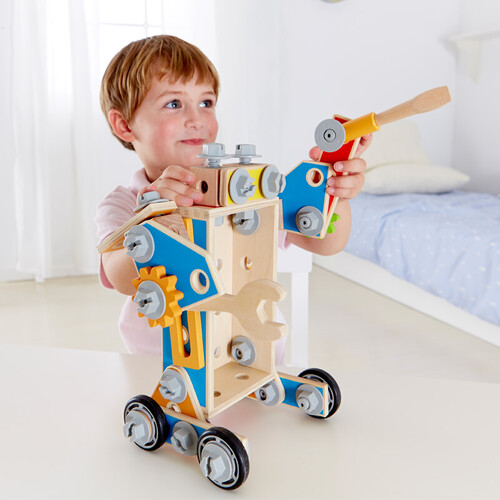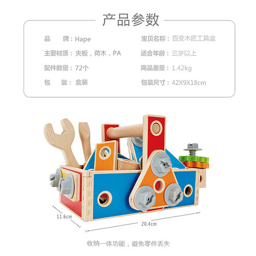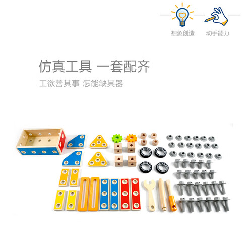 内含丰富的工具用品,满足孩子敲敲拧拧的习惯,更适合男宝宝玩。可解锁多种创意造型,开发宝宝的想象力。