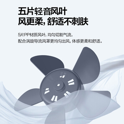 优选5片优质的PP材质风叶,转动噪音更低,送风更加均匀,让你倍感舒适。小巧轻量化的机身加持,随意安放。