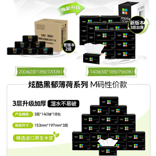 妮飘 炫酷黑郁薄荷系列软抽纸