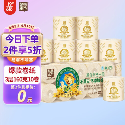 泉林本色 无漂白不掉屑卷纸