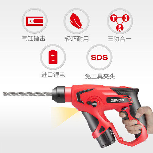 电锤电钻螺丝批家用三合一,轻松打孔不惧硬墙。免工具两用夹头,无需转换夹头即可实现电锤转电钻。工具套装配套齐全更省心。