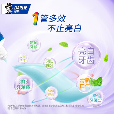 具有出色的亮白牙齿的能力,让你在各种环境下大胆展示笑容。清爽的薄荷香型,可以遮盖口腔异味。
