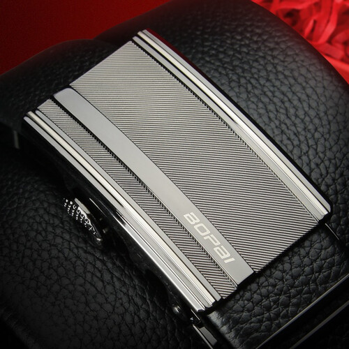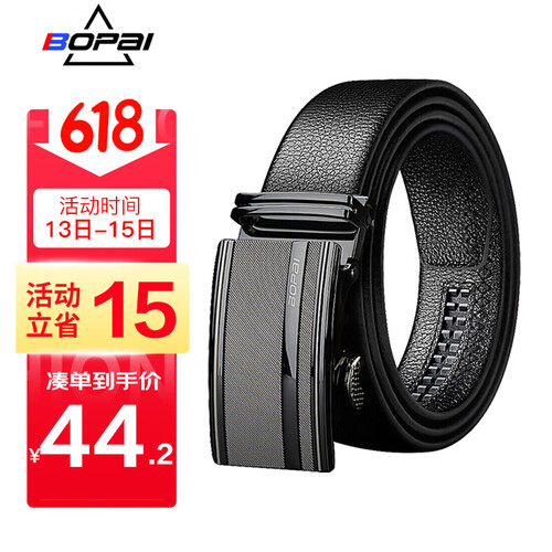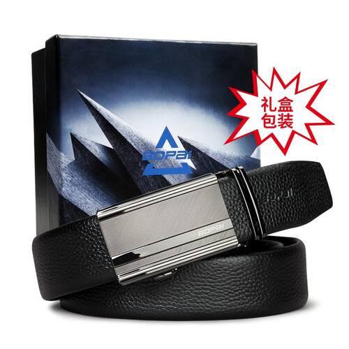 博牌自动扣头层牛皮皮带