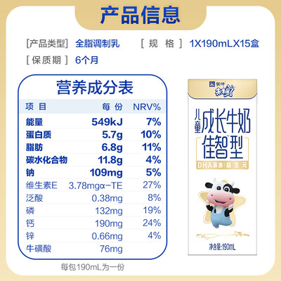 低聚半乳糖:低聚果糖的比例为9:1,保证了奶源醇正的情况下又在口感上更上一层楼,让宝宝更爱喝。