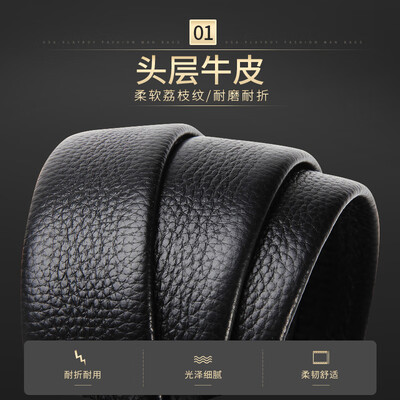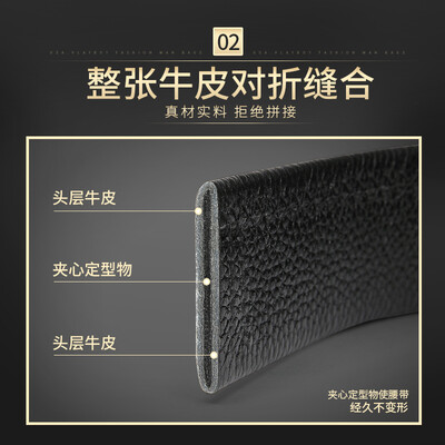 头层牛皮材质结实紧密韧性强,采用内穿式设计,佩戴的时候不翘尾巴。品牌logo装饰,彰显皮带档次感,适合商务场合佩戴。