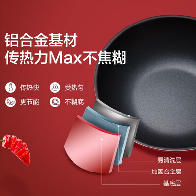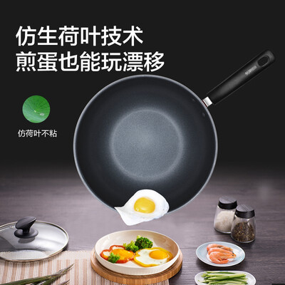 采用仿生荷叶表面处理技术,可以实现持久不粘锅,更耐磨,更耐用。选用铝合金材质制作基材,提升传热力。