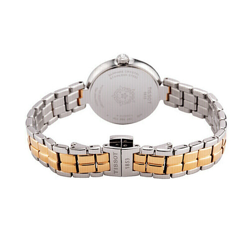 蝴蝶表扣显得美观,操作简单,便于佩戴。白色珍珠贝母表盘晶莹通透,彰显美感。方格日期显示窗,方便快捷。
