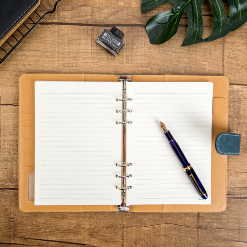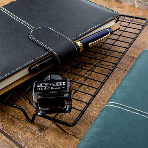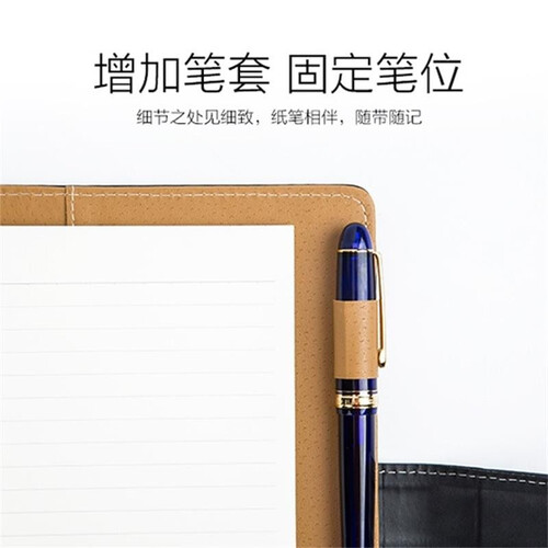 拥有PU材质的封面,精细的缝线彰显不俗气质,手感舒适便于日常携带。内置贴心的笔套固定位置,有效降低钢笔丢失的风险。