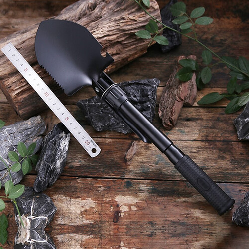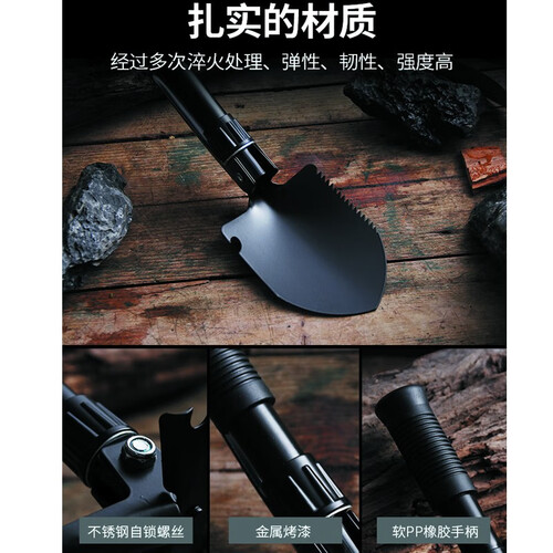 采用优质碳钢,经过多次淬火处理,弹性韧性强度都有很大提升,铲头180度可调整,秒变铲子/锄头,方便折叠收纳。