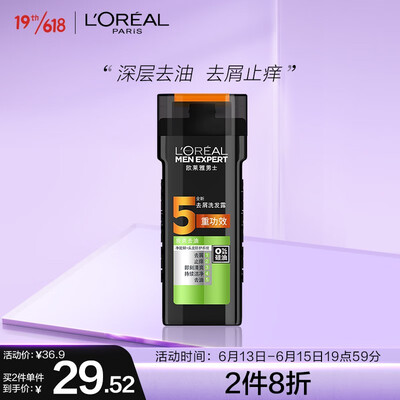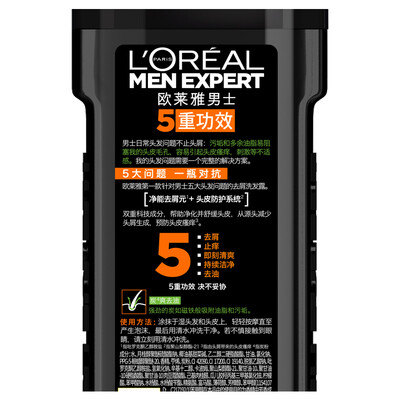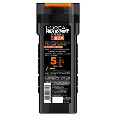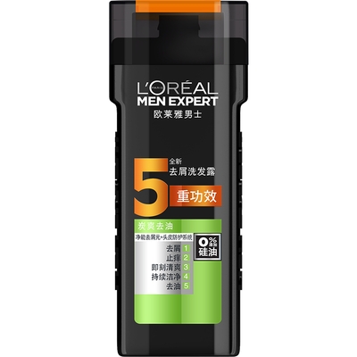 欧莱雅炭爽去油洗发水活性炭因子吸附油脂污垢,净能锌洁净止痒,舒缓头皮。瓶身设计简约劲酷,棱角分明符合男士品味。
