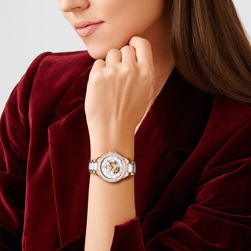 为了展现出你柔美的一面,这一款女士腕表匠心打造花蝶镂空的表盘,工艺精湛,大气优雅,凸显你的绝美气质。