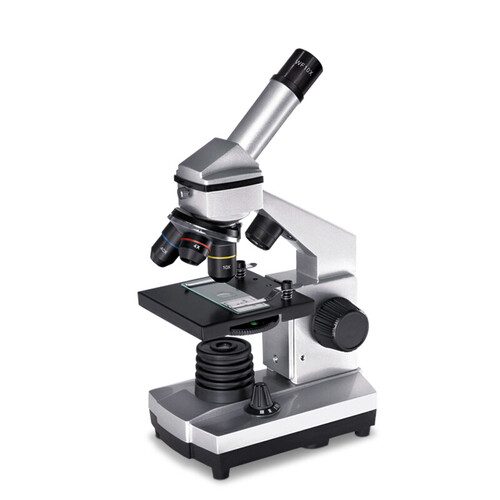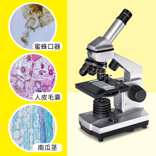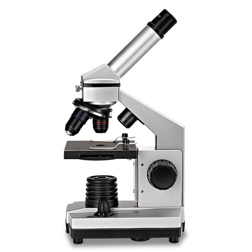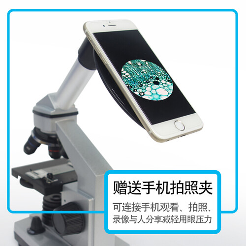 此款显微镜采用金属铝合金材质打造,银色与黑色相衔接,让整机不失单调,金属载物台,细腻质感,经久耐用。