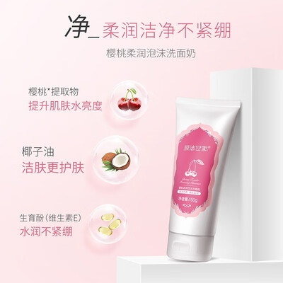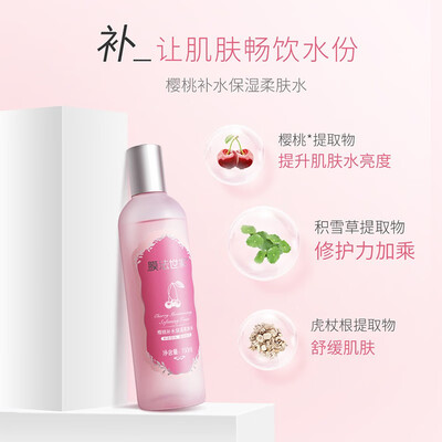 萃取樱桃精华,睡眠面膜持续补水,保湿润泽;洗面奶温和清洁,泡沫绵密;柔肤水提升水润度,乳液清新水漾质地,长效锁水保湿。