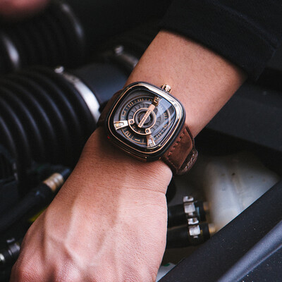 旋转式的表盘设计,读时更加的清楚,也增添更多的乐趣。毛孔细腻的牛皮表带,触感柔软舒适,佩戴也非常的方便。