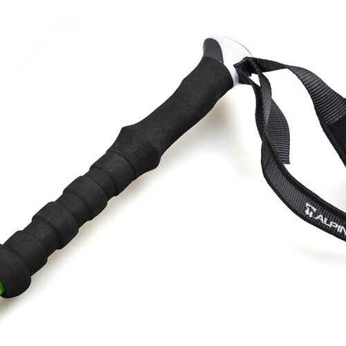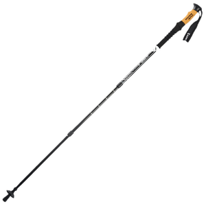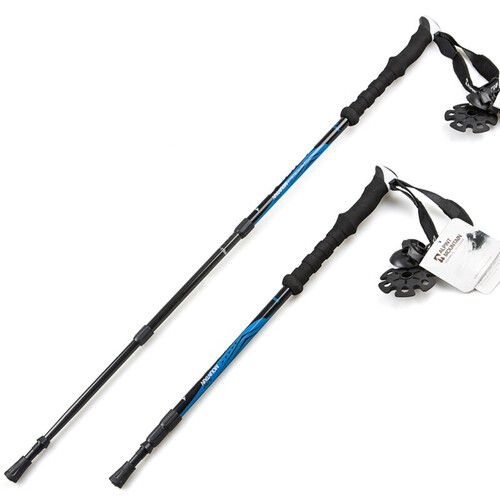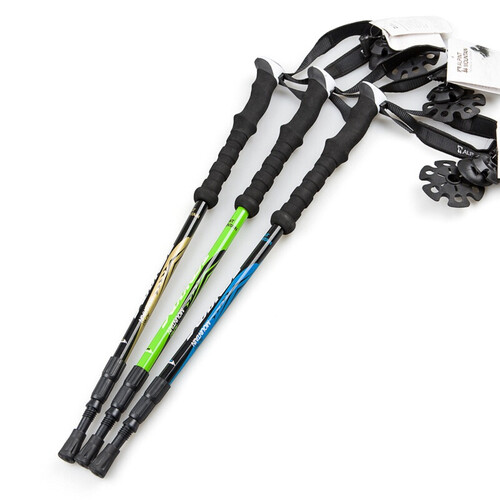 航空碳纤维材质制作,质量轻盈且受力性好,可方便户外登山时使用;三节伸缩的设计,还能方便调节长度。