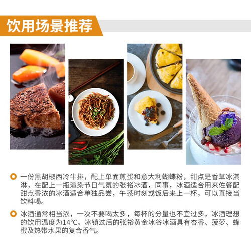 色泽金黄的酒体,具有花果、蜂蜜、及热带水果的香气,口感甜润爽口,余香持久。与水果、蛋糕等美味搭配,打造美妙下午茶时光。