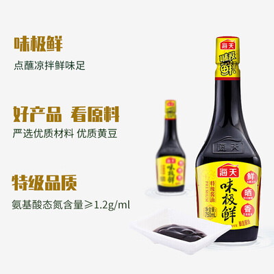这款海天味极鲜点蘸凉拌酱油,坚持将阳光作为酿造酱油重要的原料,鲜味浓郁,适合做凉拌菜时使用。