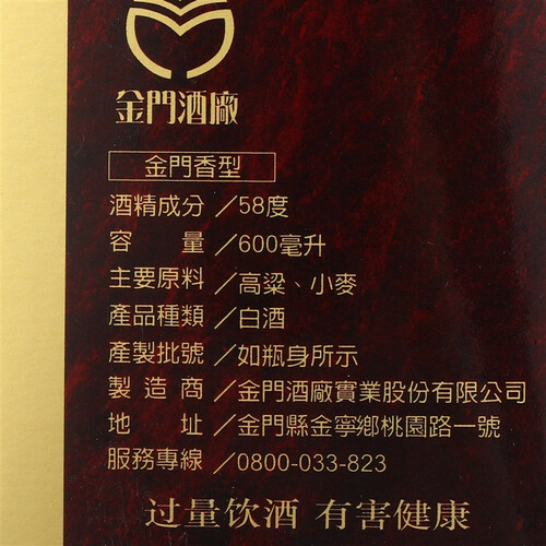 金门高粱 823纯粮58度白酒