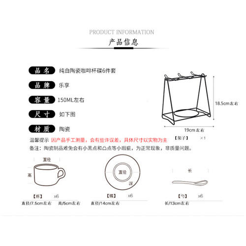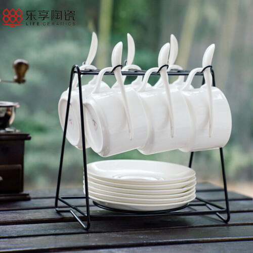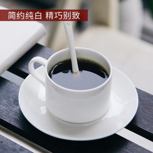 乐享咖啡杯套装整体纯白色,看起来简约干净。杯身比较薄,喝水使用触感柔和。杯碟具有一定的深度,还可以做盛放食物容器。
