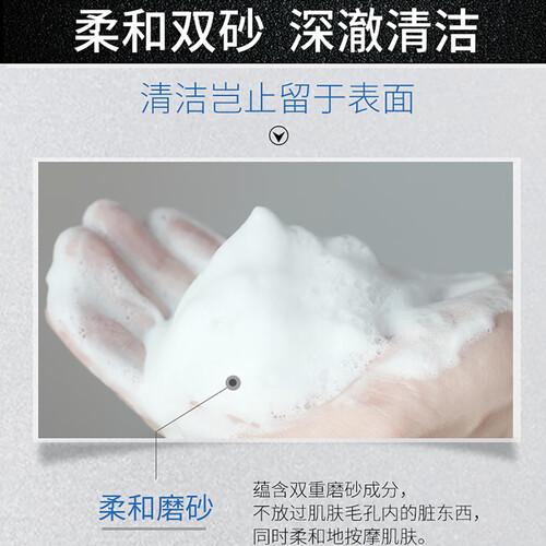 含黑白磨砂柔珠,轻柔按摩,能够清洁皮肤表面污垢。碳粉成分,能深层吸附毛孔内脏污,缓解黑头问题。添加古龙香,彰显男士魅力。