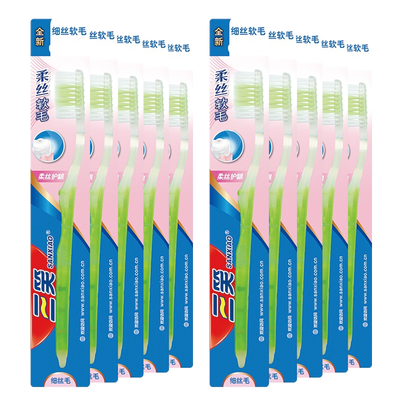 牙刷刷头背面采用波浪形的舌苔刷设计,在刷牙的同时进行舌苔清洁。柔软细丝刷毛,深入清洁牙缝和牙龈沟,不伤牙龈和牙釉质。