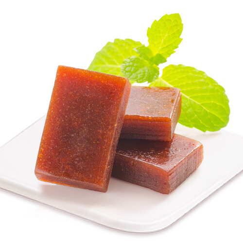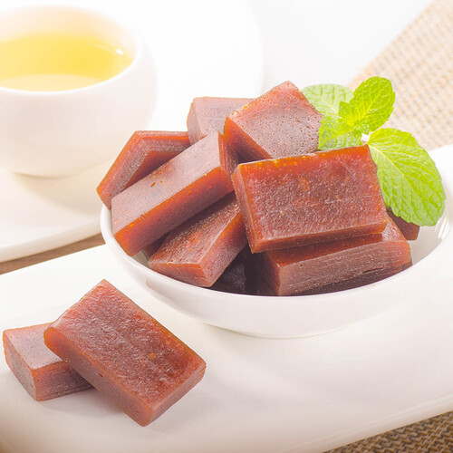 酸甜不腻的山楂糕,通体红透,色泽诱人,肉厚饱满。原料是新鲜山楂果,细腻无渣,口感新鲜,酸甜适宜,开胃生津止渴。