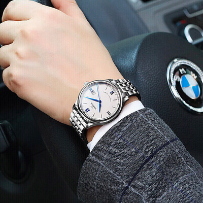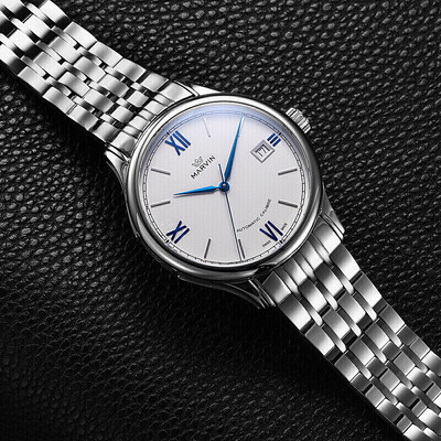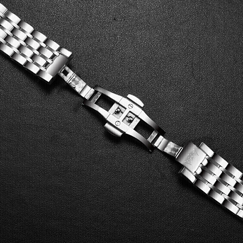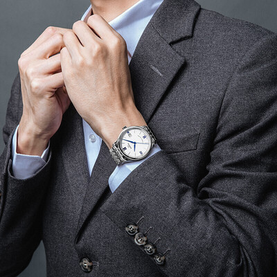 旋入式透明底盖不仅能让佩戴者更直观地看到表内的机械系统,还增强了腕表的防水能力,精钢材质表带能更紧密地贴合手腕。