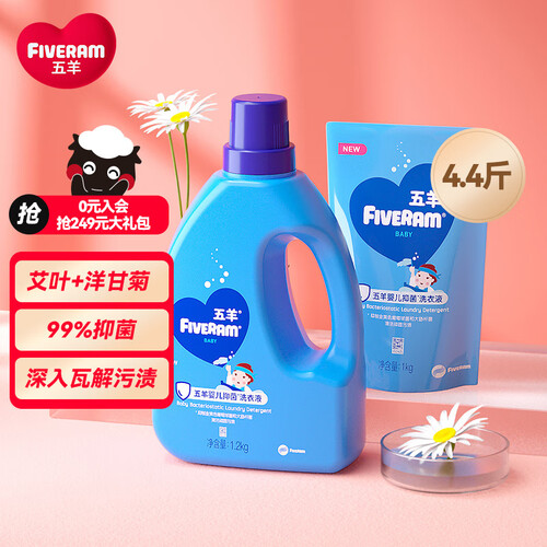 五羊婴儿洗衣液,抑菌防护配方,有效抑制各种细菌,任由宝宝随心玩。低泡温和轻松漂洗,衣物洗后柔软不发硬,洁净如新。
